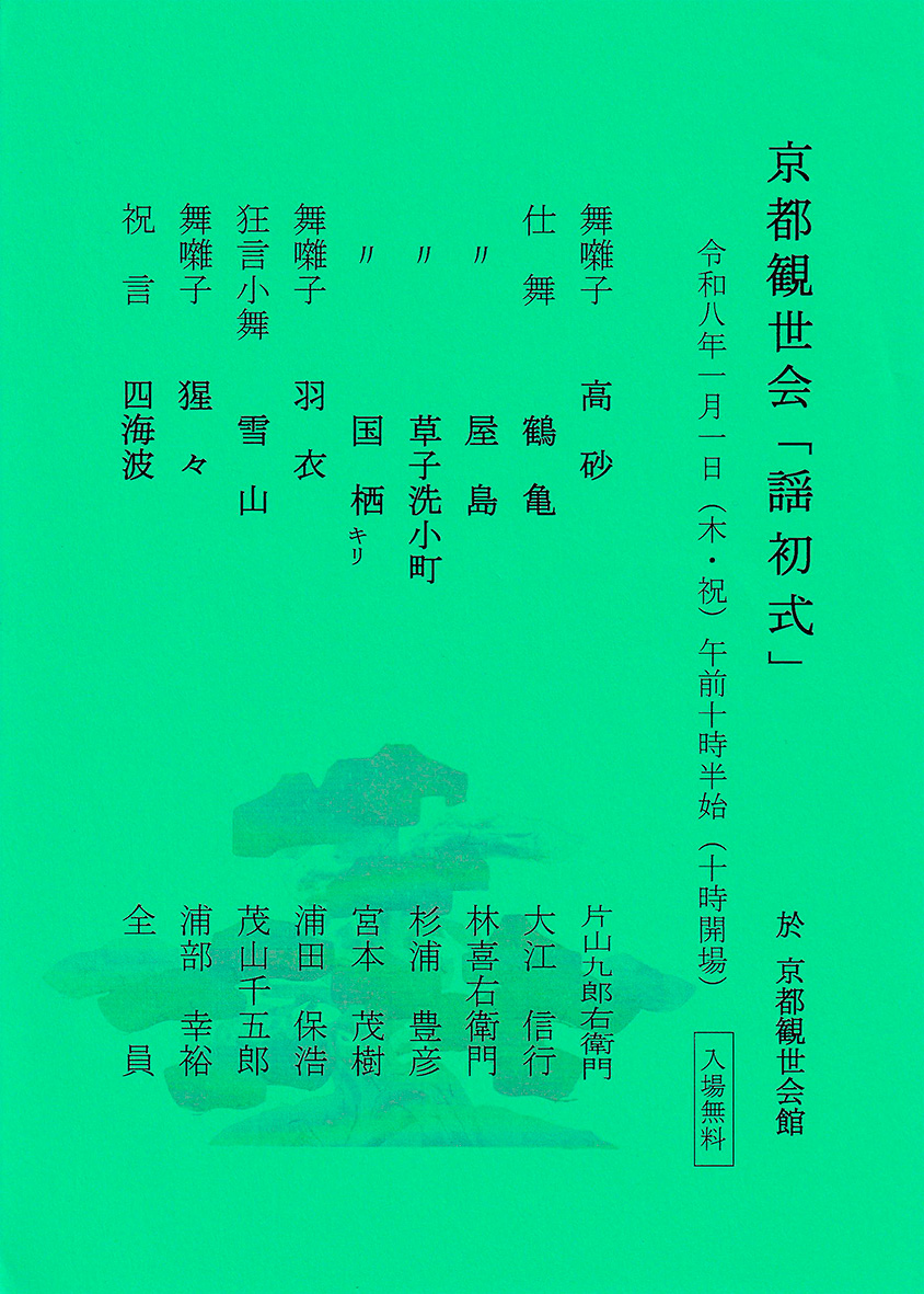 1月1日(木・祝)13:00京都能楽会新年奉納次第