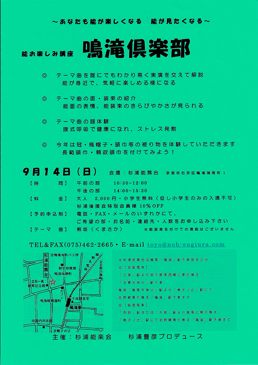 『鳴滝倶楽部』 ~能が楽しくなる 能が見たくなる講座~ テーマ曲 「熊坂」