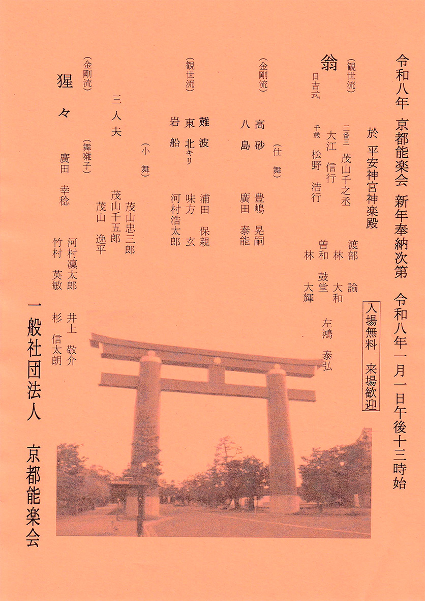1月1日(木・祝)13:00京都能楽会新年奉納次第